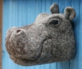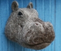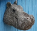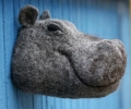 Добрый Бегемот из натуральной шерсти - это неожиданный и интересный подарок. Он украсит различные интерьеры, будь то загородный дом, баня или кафе/ресторан. Оригинальная альтернатива охотничьим трофеям. Вы сможете использовать его в качестве ключницы в прихожей или подставки для колец и сережек. Крепится на стене либо на подставке.